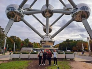 Nach dem Aufenthalt im Afrikamuseum fuhr die Gruppe nach Heysel zum Atomium, wo sie ebenfalls eine informative Führung zu dem Bauwerk, seiner Geschichte und Bedeutung für die Weltausstellung von 1958 bekamen. Im Anschluss führten die Studierende wieder einige Interviews zu dem Thema der Weltausstellung von 1958 mit dem Guide. Den Abend ließ die Gruppe bei einem Abendessen im Gare Maritime (Tour & Taxis) ausklingen und bestaunte anschließend Brüssel bei Nacht. Später ging es wieder zurück nach Lüttich in die Jugendherberge.